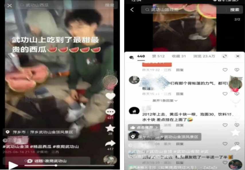 网民发布江西萍乡武功山景区存在“一锤子商业”“天价西瓜”的视频