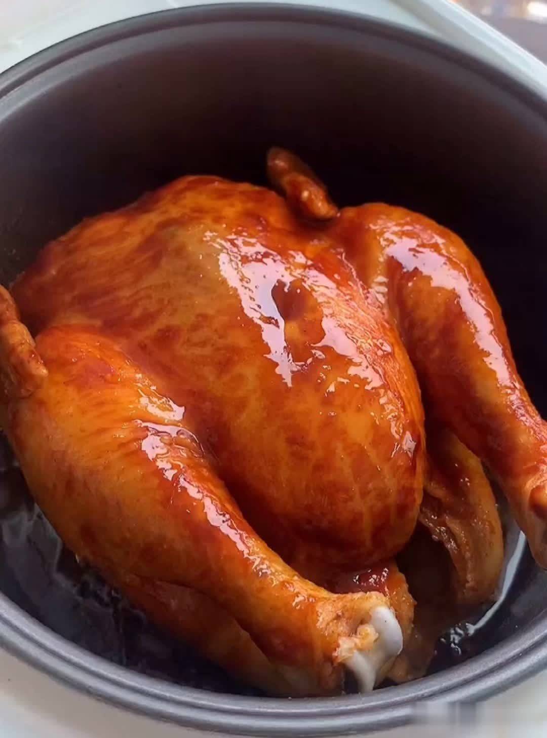 6. 按下“烧饭”键,第一次跳闸后别掀盖,用锅铲帮鸡翻身,再按第二次烧饭,统共两次烧饭按序≈40分钟,尽头于360°立体焗烤。