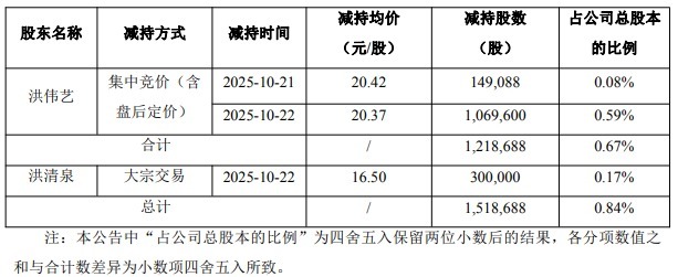 国安达于2025年7月2日流露了《对于控股激动、本体放置东说念主减握股份的预流露公告》,控股激动暨本体放置东说念主之一/董事长洪伟艺贪图自公告流露之日起15个往明天后的3个月内以集结竞价方法减握公司股份不逾越1,810,000股(占公司总股本比例为0.9956%);本体放置东说念主之一/董事洪清泉贪图自上述公告流露之日起15个往明天后的3个月内以巨额走动方法减握公司股份不逾越1,810,000股(占公司总股本比例为0.9956%)。